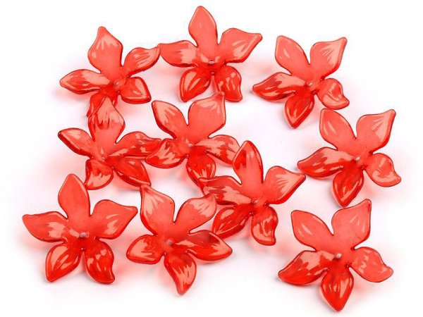 [Půvabný plastový květ v transparentních barvách nadchne především korálkářky, které rády tvoří květinové šperky. Je velice lehký, vhodný i na náušnice. Květ můžete využít jako sukýnku k výrobě ketlovaných andělíčků, viz naše ilustrační foto. Na našem specializovaném webu najdete detailní fotonávod na výrobu andělíčků.]