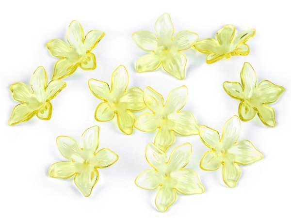 [Půvabný plastový květ v transparentních barvách nadchne především korálkářky, které rády tvoří květinové šperky.