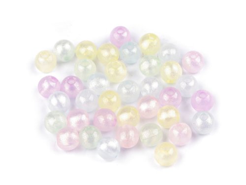 Plastové korálky s perleťovým AB frost efektem nadchnou děti i dospělé. Efekt ojíněná je velice poutavý, našim fotografům se fotografie velmi povedly, ale věřte, že ve skutečnosti jsou korálky ještě zajímavější. Korálky můžete použít na výrobu náhrdelníků, náramků, přívěsků ke klíčům apod. Balení 20 g obsahuje cca 78 ks korálků.