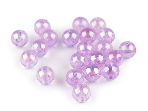 Plastové korálky s AB efektem uchvátí děti i dospělé. Jsou transparentní, ale jejich povrch má vysoký lesk s AB efektem. Našim fotografům se fotografie velmi povedly, ale věřte, že ve skutečnosti jsou korálky ještě zajímavější. Korálky můžete použít na výrobu náhrdelníků, náramků, přívěsků ke klíčům apod. V balení 10 g je cca 23 ks korálků.