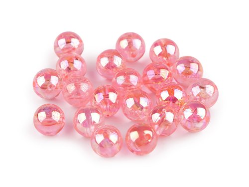 Plastové korálky s AB efektem Ø10 mm - růžová (500 g)