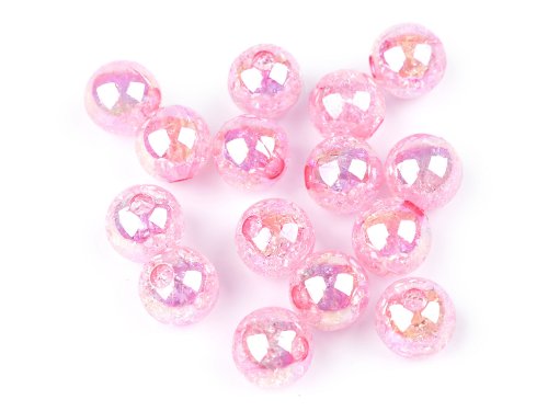 Větší plastové korálky nadchnou děti i dospělé. Jsou doslova magické, protože mají vysoký lesk s AB efektem, navíc uvnitř mají působivé kraklé - praskliny, které se lidově nazývají práskačky. Korálky jsou velice kvalitní, všude hladké, nemají žádné otřepení nebo viditelné švy. Našim fotografům se fotografie velmi povedly, ale věřte, že ve skutečnosti jsou korálky ještě zajímavější. Můžete je navlékat na silon, díky většího průvleku i na šňůrky nebo jiný návlekový materiál. Korálky můžete použít na výrobu náhrdelníků, přívěsků ke klíčům, hodí se i na výrobu lapačů snů, k ozdobení tašek apod.