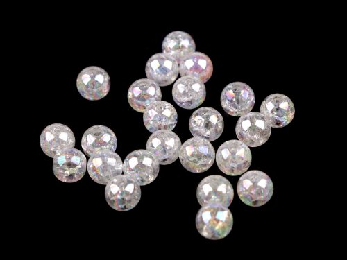 Plastové korálky s AB efektem nadchnou děti i dospělé. Jsou doslova magické, protože jsou transparentní, ale jejich povrch má vysoký lesk s AB efektem. Našim fotografům se fotografie velmi povedly, ale věřte, že ve skutečnosti jsou korálky ještě zajímavější. Korálky můžete použít na výrobu náhrdelníků, náramků, přívěsků ke klíčům apod. Balení 10 g obsahuje cca 32 ks korálků.
