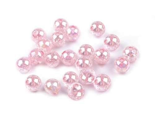 Plastové korálky s AB efektem Ø8 mm - růžová sv. (10 g)