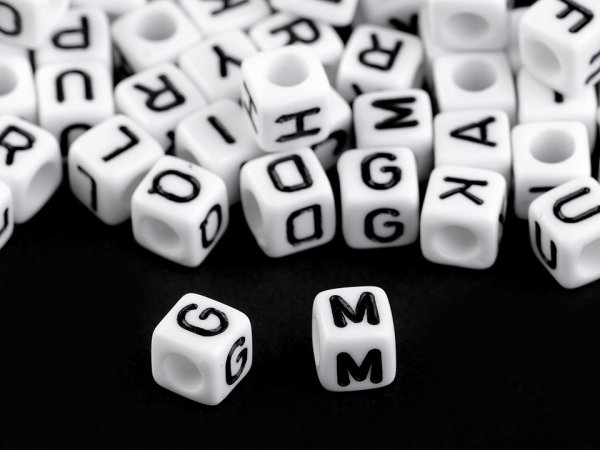 Korálky s písmenky potěší především školní děti. Mohou vyrábět populární náramky přátelství se jménem obdarovaného. Korálky mají tvar kostky. Písmena jsou na všech ploškách, chybí pouze na stranách s průvleky. Horizontálně umístěný průvlek umožňuje skládat z písmen slova, jména apod. Díky velkému průvleku se korálky hodí i na gumičkové náramky. Tělo korálku má bílou barvu, písmena jsou černá. Jako návlekový materiál můžete použít pruženky a silony, různé šňůrky, gumičky apod. V sáčku je mix různých písmen. Sáček nemusí obsahovat všechny kombinace písmen z abecedy, jednotlivá balení se od sebe mohou lišit. Písmenka jsou z anglické abecedy, tudíž bez diakritických znamének. V jednom sáčku je 47 - 50 ks korálků.