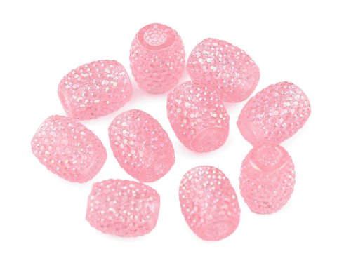 Plastové korálky s velkým průvlekem 13x15 mm - (057) růžová sv. AB (5 ks)