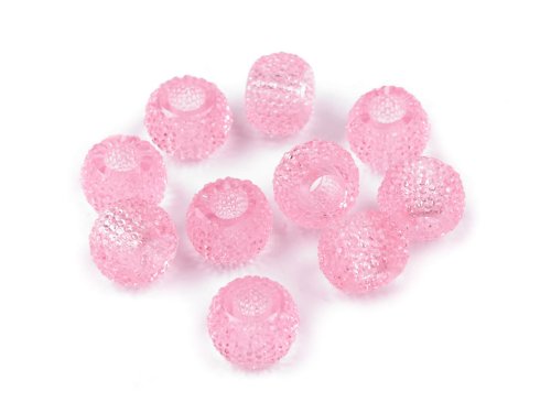 Plastové korálky s velkým průvlekem mají díky drobných plošek výrazný lesk. Jsou velice kvalitní, nemají žádné otřepení nebo viditelné švy. Jejich velikou výhodou je lehkost použitého materiálu. Korálky využijete nejen k výrobě bižuterie, ale i ke zdobení oděvů, tašek nebo plavek. Díky velkému průvleku se hodí i na výrobu macrame dekorací. Korálky jsou vhodné pouze pro šetrné ruční praní.