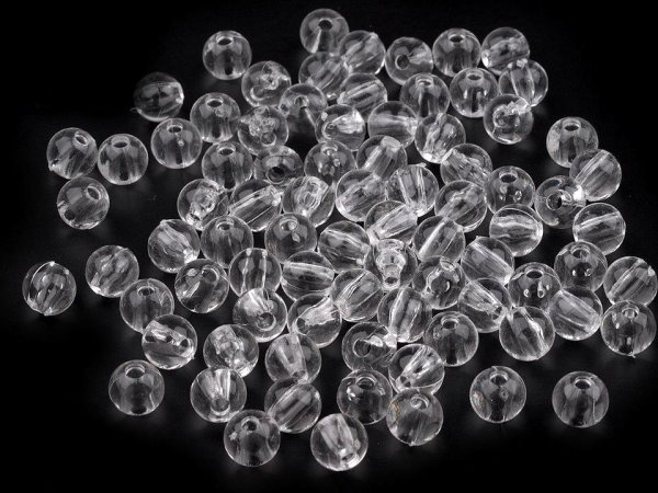 [Transparentní plastové korálky se líbí dětem i dospělým. Dají se použít na výrobu náhrdelníků, náramků, přívěsků ke klíčům apod.] [V balení 20 g je cca 150 ks korálků. ] Korálky černé barvy jsou neprůhledné. [Časem mohou korálky pouštět barvu.]