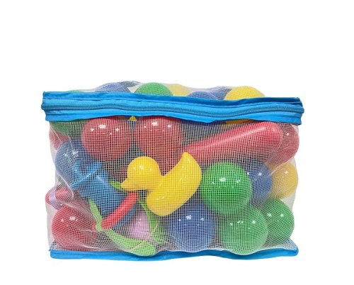 Plastové míčky s udičkou v PVC síťce, 62ks, průměr 6cm
