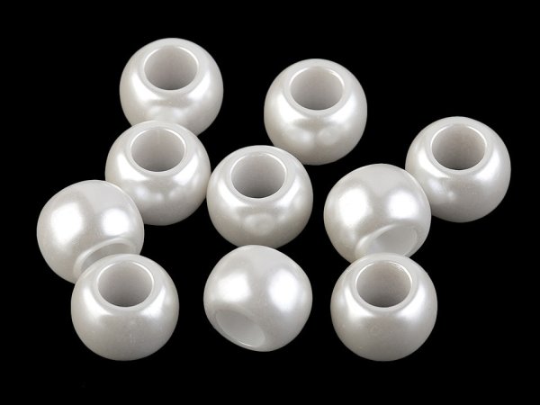 Plastové perly s velkým průvlekem 11x15 mm - bílá perleť (10 ks)