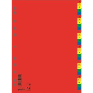 Z ekologického polypropylenu o tloušťce 120 mikronů Počet rozlišovacích listů: 31 Index: 1- 31; Děrování: 11 Formát: A4 Velikost rozdělovníku: 230x297mm; Sada balena samostatně ve fólii