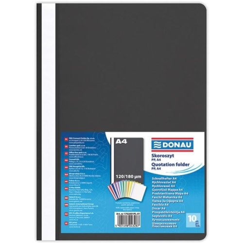 Plastové rychlovazače DONAU A4, černé, 10 ks