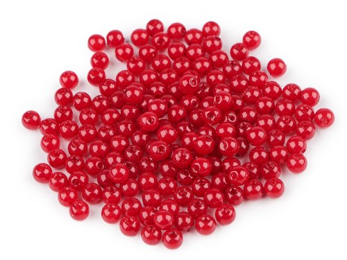 Osvědčené plastové korálky s blýskavým leskem, na jaký jste byli zvyklí jen u skleněných voskovaných perlí. Jejich velikou výhodou je lehká hmotnost, nemusíte se bát použít je do složitějších náhrdelníků, hodí se i pro dlouhé návleky. Vašim šperkům dodají slavnostní vzhled. [V balení 20 g je cca 120 ks korálků, v balení 500 g je cca 4500 ks korálků. ] [Korálky č. F40 - červené tmavé nemají perleťový lesk.]