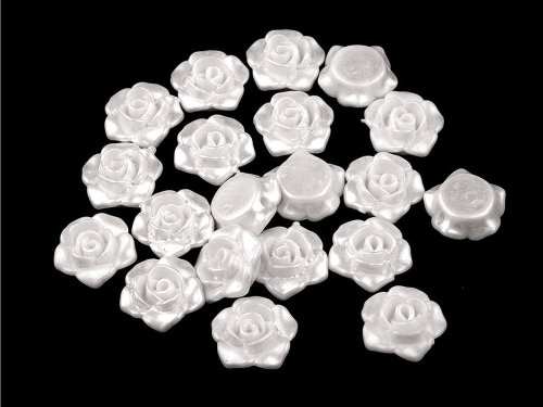 Plastové voskové korálky / perly růžičky s průvlekem Ø13 mm - bílá (20 ks)