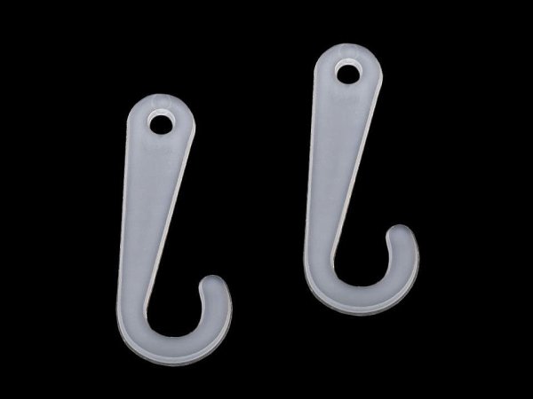 Plastové háčky využijete na prodejnách na vystavení ponožek, rukavic, čepic, šálů, nákrčníků, látkových čelenek apod. [Ke zboží je upevníte pomocí splintovacích kleští.]