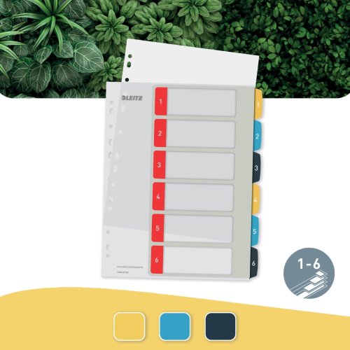 Uspořádejte své dokumenty a složky pomocí těchto výrazných a odolných 1-6 numerických rejstříků Obsahuje 6 barevných potiskovatelných dělících štítků 1-6 pro snadné třídění a odkazování Přední strana …