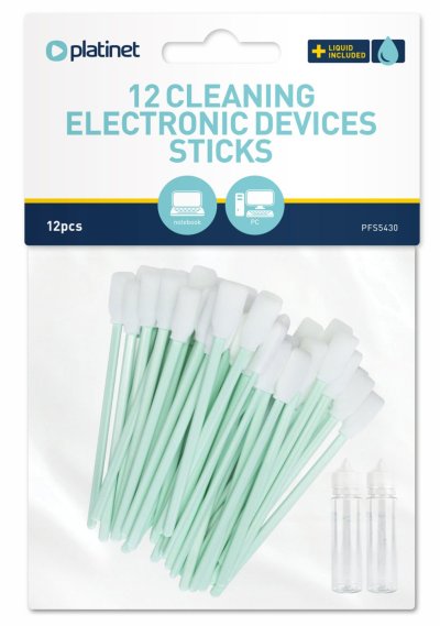 Plastové tyčinky jsou zakončeny jemnou pěnou, která je šetrná k citlivým povrchům a nepoškrábe je. Součástí sady jsou dvě ampule antistatického čistícího roztoku bez obsahu alkoholu. Skvěle odstraňují prach, mastnotu a nečistoty z úzkých štěrbin elektronických zařízení. Jsou ideální pro detailní čištění kláves, dálkových ovladačů a další jemné techniky. V balení 12 tyčinek k jednorázovému použití.