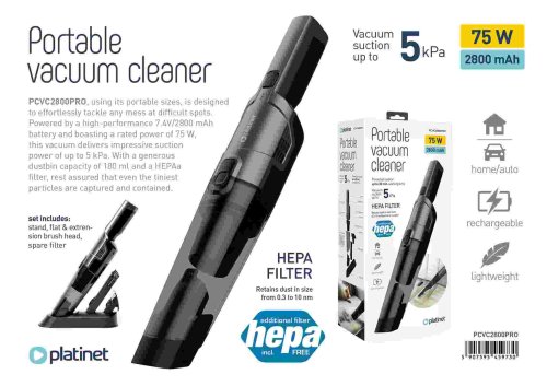 "PCVC2800PRO - investice do čistoty a svěžesti. Je vybaven vestavěnou baterií o kapacitě 2800mAh, která umožní kolem 30 minut nepřetržitého vysávání.