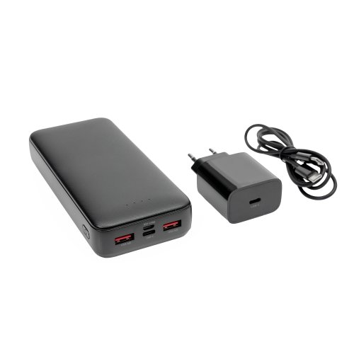 HLAVNÍ VLASTNOSTI: • Kapacita: 20 000 mAh / 3,7 V • 20W PD nabíječka: Technologie Power Delivery 3.0 • Délka kabelu: 100 cm (USB-C na USB-C) • Výstupní porty: 2x USB-A, 1x USB-C • Rychlé nabíjení: Ano (PD 3.0) • Barva: Černá