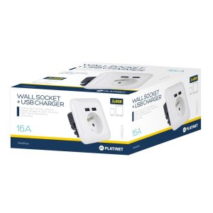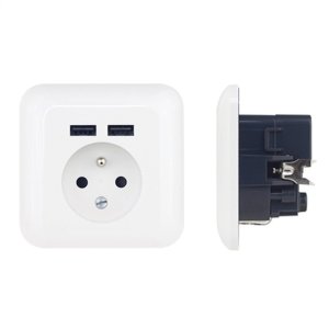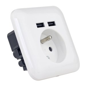 Nástěnná zásuvka (Ref PWSF2U) "francouzského typu" vybavená dvěma USB porty pro připojení dvou dalších zařízení. Jedná se o jednoduchý, ale velmi užitečný produkt, který vám umožní nabíjet všechny typy telefonů, tabletů a dalších dobíjecích zařízení přes USB port. Je tedy možné současně nabíjet 2 USB zařízení.