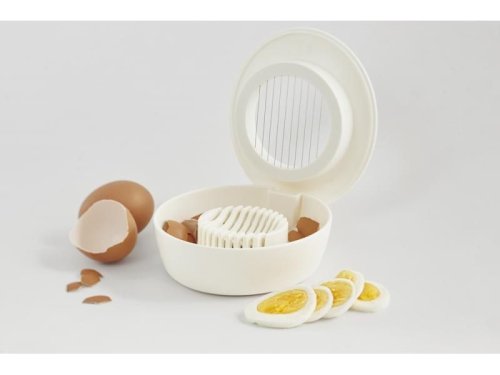 Ideální pro tenké plátky vajec, s integrovanou miskou pro skořápky.