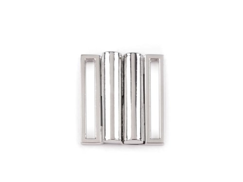 Zapínání na plavky je vyrobené z nemagnetického, pratelného kovu. Zapnete jej vsunutím jednoho dílu mezi druhý díl. Rozměry jednoho dílu spony jsou 21 x 33 mm.
