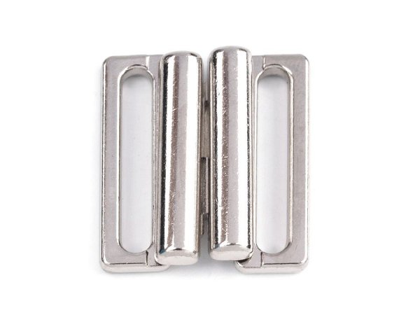 Kovové zapínání na plavky je složené ze dvou dílů a zapíná se vsunutím jednoho dílu mezi druhý díl. Rozměry jednoho dílu spony jsou 15 x 24 mm.