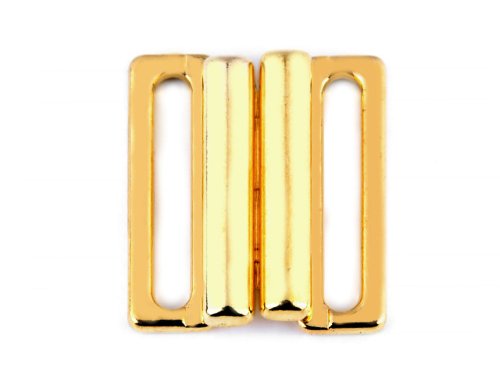 Kovové zapínání na plavky je složené ze dvou dílů a zapíná se vsunutím jednoho dílu mezi druhý díl. Rozměry jednoho dílu spony jsou 15 x 24 mm.