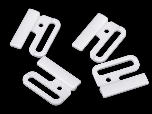 Plastové zapínání využijete na plavky nebo opasky. Zapíná se klasickým způsobem, a to vsunutím jednoho dílu mezi druhý díl. Rozměry jednoho dílu spony jsou 25 x 32 mm.