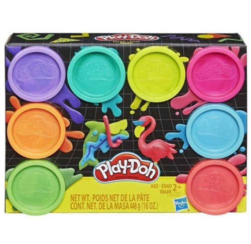 Dodejte svým výtvorům jiskru s těmito osmi neonovými barvami modelíny Play-Doh. Dostupné v tyrkysovém, růžovém, ostře růžovém, zeleném, světle modrém, oranžovém, fialovém a zeleném odstínu.
