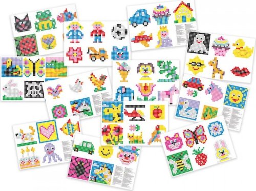 Velká rozmanitost vzorů a obtížnosti. 67 obrázků. Snadno umístíte pod průhledné podložky na korálky XL.