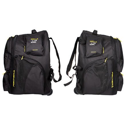Fischer Backpack JR S25 je praktický batoh pro juniorské hokejové hráče všech výkonnostních úrovní – od úplných začátečníků až pro profesionální hráče. Fischer Backpack JR je unikátní díky tomu, že jej lze používat jako klasický batoh na záda nebo jako klasická taška s kolečky a vysouvacím madlem. Ať tak či tak, vždy pohodlně převezete kompletní hokejovou výstroj na trénink i zápasy. Taška je vyrobena z odolného 600D Polyesteru, její rozměry jsou přibližně 41 x 41 x 53 cm, plastová kolečka mají průměr 9 cm a má zpevněné dno. Dále tato taška nabízí jeden hlavní úložný prostor, dvě přední kapsy, dvě horní boční kapsy pro drobnosti, dvě postranní odvětrávané kapsy na brusle, boční uchycení na suchý zip pro hokejky, nastavitelné zádové popruhy a ruční popruh pro snadnou manipulaci.