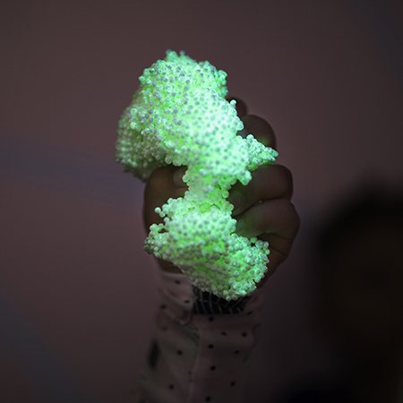 Rozzářete svoje výtvory! Modelína, která nešpiní, vhodná od 3 let do 10 let. Zhasněte vypínač a sledujte, jak vaše mistrovská díla září ve tmě!