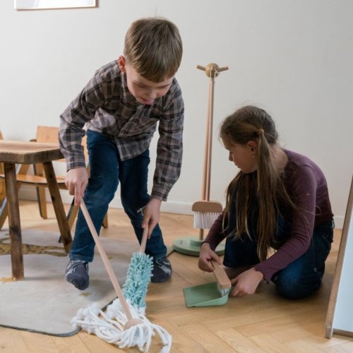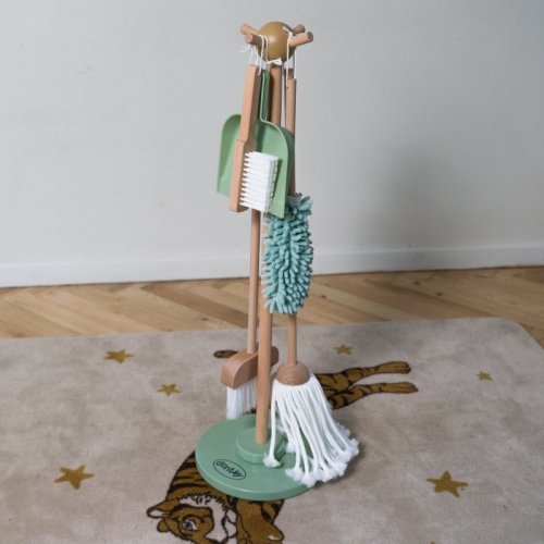 dřevěná sada na úklid pro roli pomocníka v domácnosti