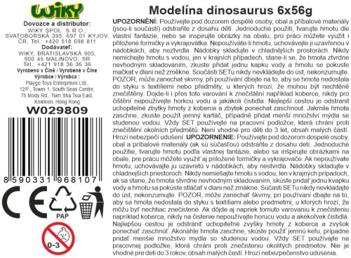 Modelína dinosaurus 6x56g. 6 barevných modelín, 8 vykrajovátek, 6 formiček.