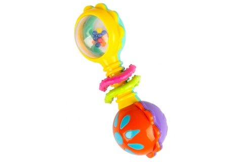 Hledáte ideální hračku pro své nejmenší, která nejen zabaví, ale také podpoří jejich vývoj? Playgro - Kousátko činka je přesně to, co potřebujete! Tato hravá a barevná hračka je navržena tak, aby se snadno vešla do malých ručiček, což dětem umožňuje pohodlné uchopení a manipulaci. Činka se při otáčení rozezní klik-klak zvuky a při zatřesení vydává chřestivý zvuk, což nejenže zábavně stimuluje sluch, ale také pomáhá rozvíjet motorické dovednosti. Věk 3m+