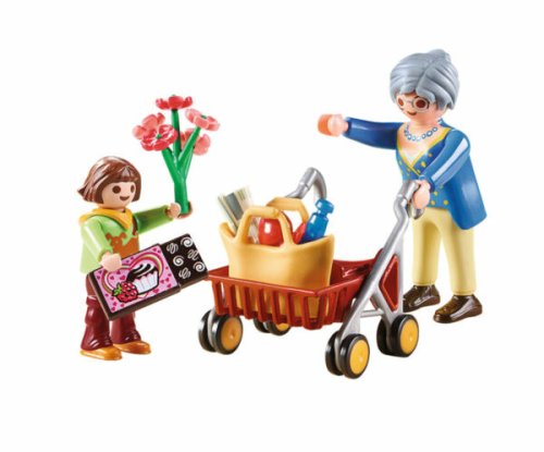 Babička s chodítkem Vnučka navštívila svoji bavičku v nemocnici a přinesla ji květinu a bonboniéru. Babička pomocí chodítka se s vnučkou prochází po nemocničním parku. Babička s chodítkem, které se může změnit v sedátko, včetně úložného prostoru. Postavičky: babička a holčička.