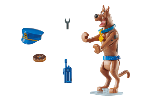 Sběratelská figurka Scooby Doo sleduje podezřelé aktivity okolo sebe. Scooby si nasadil policejní čepici, do tlapy vzal vysílačku a pozoruje, co se děje v okolí. Jako policista je připraven zachraňovat lidi. Balení obsahuje: 1x figurka Scooby, policejní čepici a další doplňky Playmobil jsou stavebnice pro děti různých věkových kategorií, které jsou tématicky zaměřené a mají mnoho propracovaných doplňků. Dílky jsou hygienické, lehce omyvatelné a nepouštějí barvu. Stavebnice Playmobil podněcují fantazii, kreativitu a podporují dětský vývoj. Vhodné pro děti od 5 let. Téma: PLAYMOBIL® SCOOBY DOO!