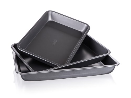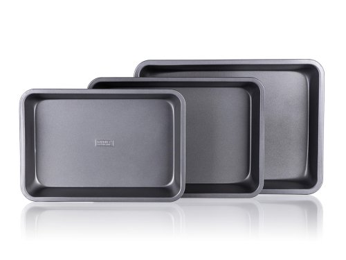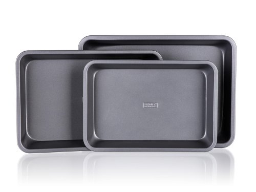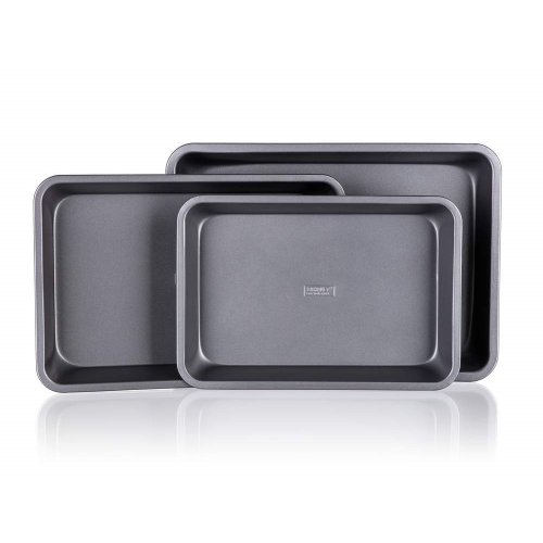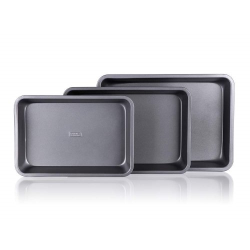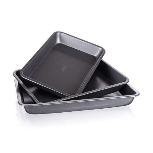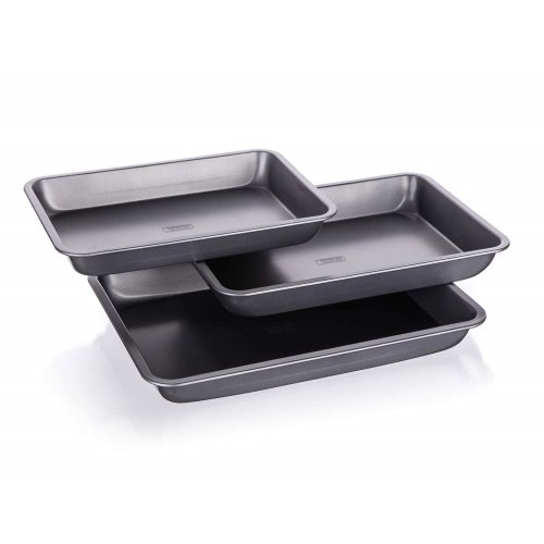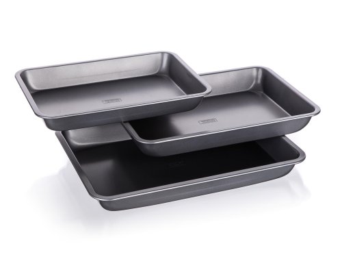3dílná sada obdélníkových plechů s nepřilnavým povrchem. Nepřilnavý povrch XYNFLON je vyroben na bázi PTFE (polytetrafluorethylenu), je vysoce odolný, má prvotřídní antiadhezní vlastnosti a snadno se udržuje.
