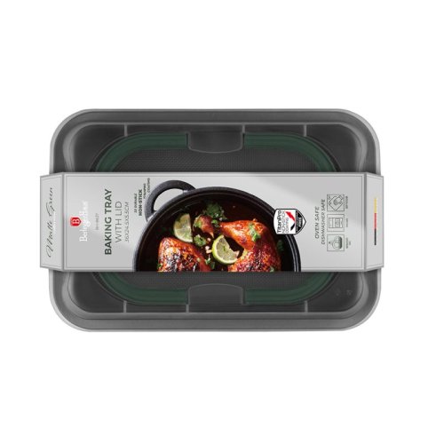Dopřejte si pohodlné a efektivní pečení s přenosným plechem na pečení s víkem z kolekce Matte Green Collection. Ideální pro každodenní použití i speciální kulinářské projekty – praktický, odolný a ekologicky šetrný.