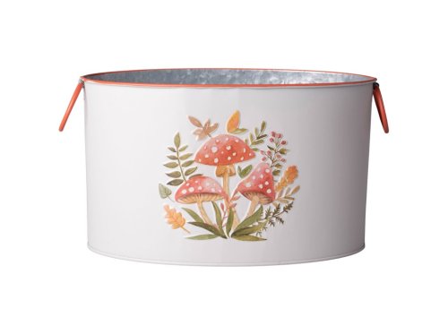 Plechová oválná dóza s motivem muchomůrky má v domácnostech široké uplatnění. Dóza zabraňuje úniku vody, takže je vhodná i jako květináč. Lze ji použít i jako podstavec pro aranžování nebo k ukládání různých drobností. Je vhodná na balkon či terasu.