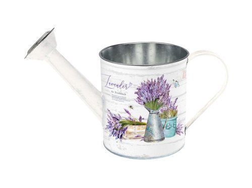 Plechová konvička s motivem levandule, která přinese do vašeho domova vůni Provence. Její rozměry jsou 300x115x145mm.