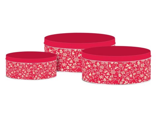 Plechová kulatá dóza Holly Jolly, červená, set 3 ks, 200x90/185x80/140x65mm