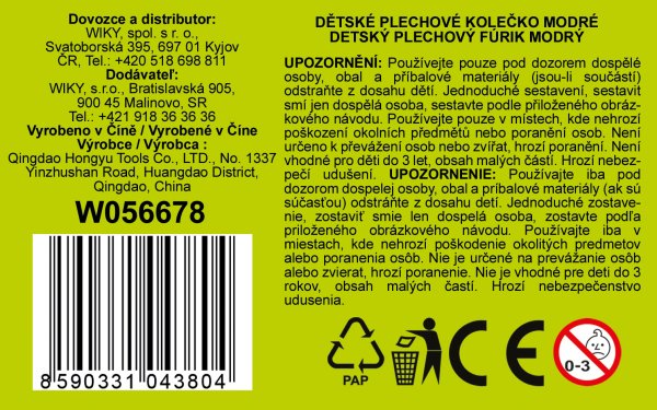 Plechové kolečko - modré - Český obal. Rozměr kolečka 82x42x35 cm.