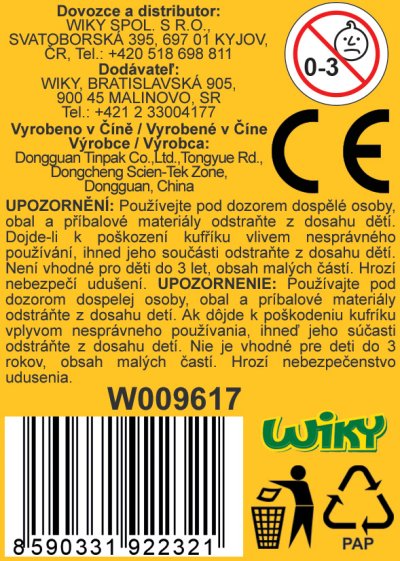 Kufřík má z jedné strany obrázek krtka s hrníčkem a z druhé krtka se zajíčkem. Rozměry výrobku 20 x 16 x 7 cm.