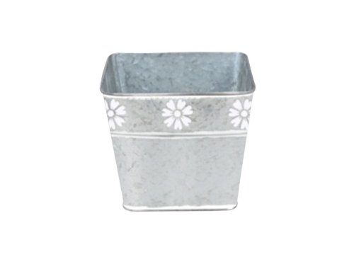 Hranatý plechový květináč s květinovým vzorem v šedé a bílé barvě, perfektní pro dekoraci. Jeho rozměry jsou 125x125x120mm.