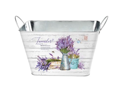 Tento hranatý plechový květináč o rozměru 263 × 176 × 155 mm s uchy a motivem levandule je vhodný pro květiny, bylinky i aranžmá. Barevný design přináší do interiéru radostnou a veselou atmosféru. Květináč je odolný, praktický a snadno se přesouvá díky pevným uchům. Ideální pro kombinaci s dalšími dekoracemi nebo jako samostatný designový prvek.