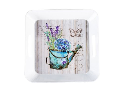 Tento barevný hranatý plechový tác s motivem konev s květinami kombinuje praktičnost a dekorativní efekt. Pevný plech je vhodný pro servírování i aranžování drobných dekorací. Stylový design dodává prostoru svěží a hravý nádech.