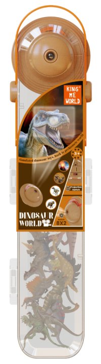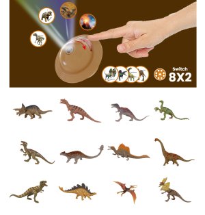 Projektor s motivy dinosaurů: Hlavní částí sady je projektor, který po vložení jednoho ze dvou přiložených kotoučů promítá na stěnu nebo strop obrázky různých druhů dinosaurů. Projektor je navržen tak, aby se dětem snadno ovládal. Každý kotouč obsahuje sadu barevných obrázků těch nejznámějších dinosaurů, jako je T-Rex, Triceratops, Brachiosaurus a další.