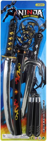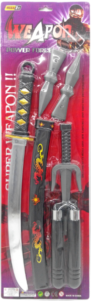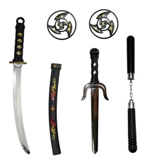 Tato komplexní sada z bezpečného plastu obsahuje vše, co malý bojovník potřebuje k tréninku a dobrodružným hrám na hrdiny. Ideální pro děti, které milují akční hry a fantazijní světy.